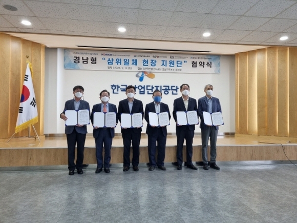 한국산업단지공단 경남지역본부는 중소벤처기업진흥공단 경남지역본부, 경남테크노파크, 창원산업진흥원, 한국건설생활환경시험연구원 영남본부, 한국수출입은행 경남지역본부 등 6개 기관과 삼위일체(三位一體) 현장지원단’ 기업지원 업무협약을 지난 14일 체결했다고 밝혔다.