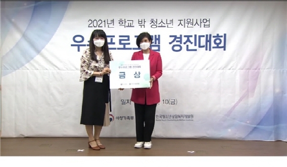 ‘울산시학교밖청소년지원센터’가 2021년 전국 학교밖청소년지원센터 우수프로그램 경진대회에서 우수프로그램 부분 ‘금상’을 수상했다.