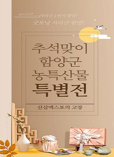 경남 함양군은 오는 10월 10일까지 상림공원과 대봉산 일원에서 펼쳐지는 '2021 함양산삼항노화엑스포' 개최를 기념해 9~10월 두달간 티몬에서 추석맞이 함양군 농특산물 특별 할인전을 실시한다.