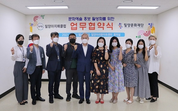 밀양문화재단은 지난 13일 밀양아리랑아트센터에서 밀양아지매클럽(밀아클)과 문화예술 홍보 활성화를 위한 업무협약을 체결했다.