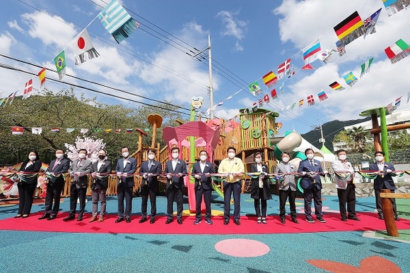 경남 창원시는 15일 진해구 여좌동에서 롯데그룹과 함께하는 'mom편한 놀이터 17호점' 개장식을 가졌다.