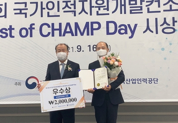 한국승강기안전공단의 승강기 중소기업 현장인력 교육기관인 승강기인재개발원이 고용노동부가 주최하고 한국산업인력공단이 주관한 ‘2021년 제12회 국가인적자원개발컨소시엄 Best of CHAMP Day 우수사례 경진대회’에서 16일 공동훈련센터 분야 우수상을 수상했다.