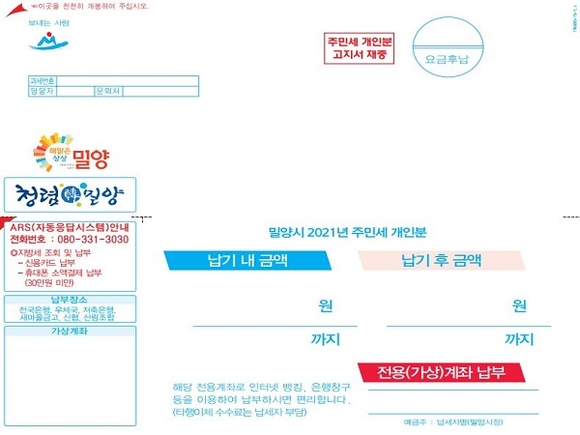 이번에 부과된 재산세 고지서를 보면 주요 정보가 큰 글씨로 표기돼 있는 것을 확인할 수 있다. 어르신들이 고지서 수령 후 작은 글씨로 표기된 내용의 확인이 어려워 행정복지센터에 연락하는 것을 본 상동면 직원이 어르신용 지방세 고지서를 제작하자는 의견을 냈다. 시청 세무과에서 이를 반영해 6월 자동차세부터 고지서의 주요 정보를 큰 글씨로 제작한 것이다.