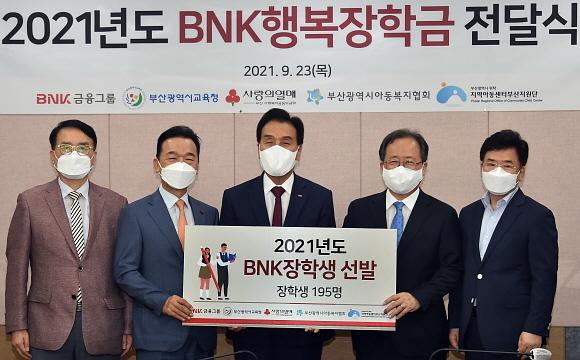 이날 BNK금융그룹이 전달한 장학금은 부산지역 인재 양성과 소외계층 학생의 실질적 교육 지원을 목적으로 부산 소재 중·고등학교 학생과 대학생 총 195명에 전달될 예정이다.