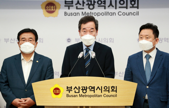 이낙연 대선 예비후보(더불어민주당)가 27일 오전 부산을 찾은 가운데 이날 오전 10시 부산시의회 브리핑실에서 기자회견을 열고 부패 척결을 위한 특별수사본부 설치를 촉구하고 나섰다.