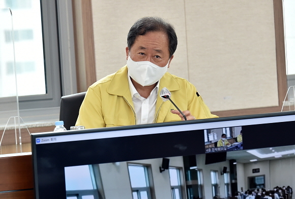 지난 27일 오전 부산시교육청 별관 전략회의실에서 ‘2022년도 주요 업무계획, 예산 종합보고회’가 열린 가운데 김석준 부산시교육감이 회의를 진행하고 있다. 시교육청에 따르면 이날 회의에는 김석준 시교육감 및 오승현 부교육감을 비롯해 본청 국·과장과 5급 이상 직원들이 참석한 가운데 진행됐다. (사진=부산시교육청 제공)