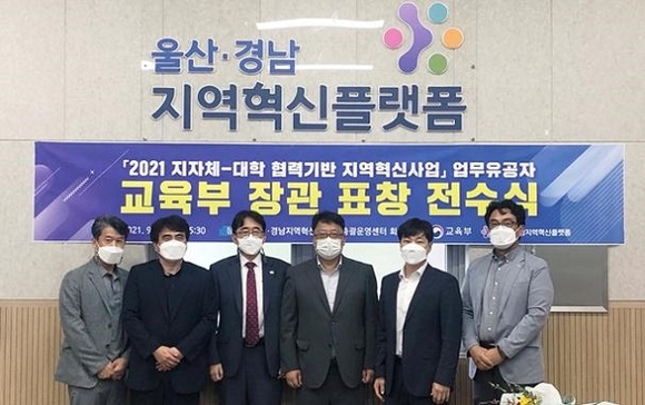 울산·경남지역혁신플랫폼 총괄운영센터는 지난 27일 센터 회의실에서 '지자체-대학 협력기반 지역혁신사업(RIS) 업무 유공자' 2021년도 교육부 장관 표창 전수식을 가졌다.