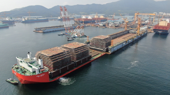 하지만 대우조선해양은 경남남부세관과의 협업으로 공법 발상전환을 시도, 외국에서 블록을 싣고 오는 전용선박인 자항선을 이용해 도크에 블록을 탑재하는 공법 검토에 들어갔다.