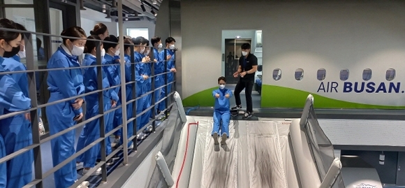신라대학교 항공서비스학과가 예비승무원으로서 도약을 위해 에어부산 본사를 방문해 안전훈련에 참여했다고 29일 밝혔다.