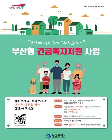 이는 박형준 시장의 공약 사업으로 코로나19 사태 장기화 등으로 인해 갑작스런 위기 상황에 처한 대상자에 긴급 생계비를 지원하는 사업이다. 생계가 곤란한 가정임에도 법적, 제도적 지원을 받지 못하는 사각지대에 놓인 가구에 72시간 이내로 생계비를 지원하고 사후에 조사, 관리를 시행하는 것이다.
