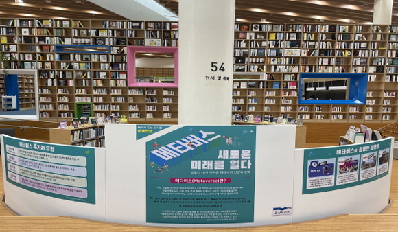 전시 도서로는 이임복의 ‘확장 가상 세계(메타버스), 이미 시작된 미래’, 닐 스티븐슨의 ‘스노 크래시’, 천윤정의 ‘가상현실과 메타버스 이야기’, 스티븐 스필버그 감독의 ‘레디 플레이어원’ 등 총 69권의 도서와 9점의 DVD를 자료실별 전시코너를 설치해 전시한다.
