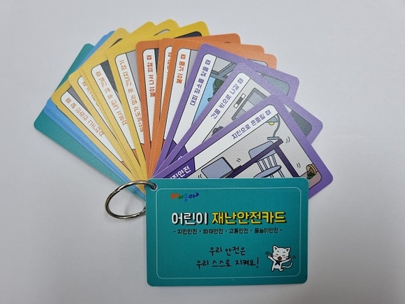 '어린이 재난안전카드'는 지난 3~6월 전담팀을 통해 초등학교 1학년의 눈높이에 맞게 제작 형태와 삽화 등을 심도 있게 검토했다. 아이들의 관심을 끌 수 있도록 디자인과 색채에 심혈을 기울였다. 지진·화재·교통·물놀이안전 등 4개 재난 유형별 행동요령을 재미있게 삽화로 구성했고, 아이들이 휴대하면서 언제든지 읽어볼 수 있도록 카드 형태로 만들었다. 총 15장으로 앞면에는 재난 대응 행동요령 삽화를, 뒷면에는 설명을 넣었다.