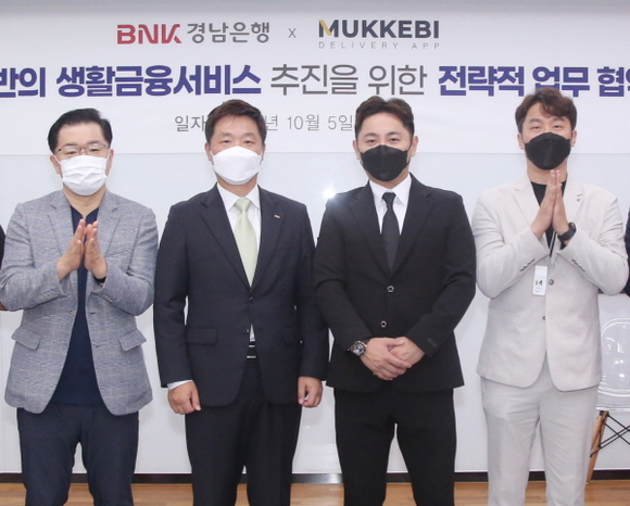 경남은행은 5일 공공배달서비스를 운영하는 ㈜먹깨비와 ‘지역기반의 생활금융서비스 추진을 위한 전략적 업무협약’을 체결했다.
