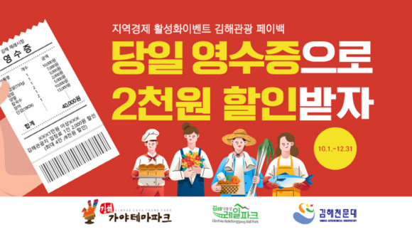 김해문화재단 관광사업본부는 지역경제 활성화를 위한 ‘김해관광 페이백’ 이벤트를 이달 1일부터 12월 31일까지 실시한다고 5일 밝혔다.
