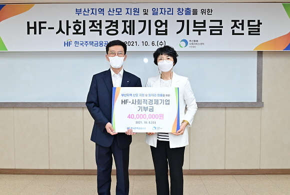 한국주택금융공사(주금공)가 부산지역 산모의 산후조리와 육아 지원 등을 돕기 위해 6일 사회적 경제기업인 부산돌봄사회서비스센터에 ‘출산·육아 기부금’을 전달했다고 밝혔다.