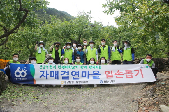 경남농협이 수확기 일손이 부족한 자매결연마을인 밀양시 단장면 구천마을을 찾아 일손돕기에 나섰다.