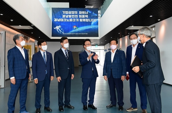 경남도의회 김하용 의장, 장규석 제1부의장, 박정열 문화복지위원장, 김진부·유계현·조영제 의원은 6일 항공 중소기업을 지원하기 위해 사천시에 설립한 경남테크노파크 항공우주센터를 방문해 임직원과 간담회를 갖고, 현장에서 애로 및 건의사항 등을 청취했다.