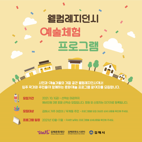 김해문화재단 웰컴레지던시가 지난 1일부터 ‘예술체험 프로그램’ 참여자를 선착순으로 모집하고 있다.