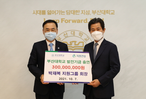 부산대는 경영대학원 최고경영자과정 제32기 졸업생인 지원그룹 박재복 회장이 7일 오전 교내 본관 5층 총장실에서 그룹 이름을 딴 ‘지원장학금’ 3억원을 출연했다고 밝혔다.