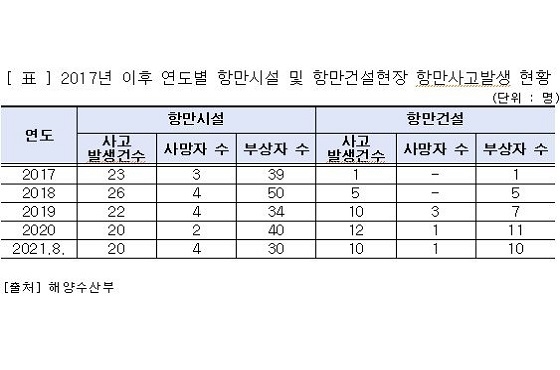 국회 국정감사가 진행 중인 가운데 안병길 의원(부산 서·동구, 국민의힘)이 해수부로부터 받은 ‘최근 3년간 항만시설·건설 현장사고 추이’ 자료를 7일 발표하고 예방책 강화 방안을 촉구했다.
