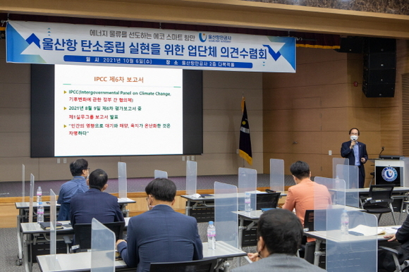 이번 행사에서는 울산항 30개 항만 업․단체 환경 분야 실무자들이 참석한 가운데 최근 국제기구와 우리정부의 2050 탄소중립 선언 및 산업 분야별 탄소중립 연합 협의체 출범에 발맞춰, 울산항 탄소중립 실현을 위해 업·단체 당사자들과 공동 노력의 필요성과 공감대를 형성하는 시간을 가졌다.