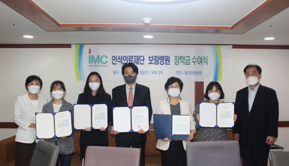 춘해보건대학교 간호학과는 지난 6일 인석의료재단 울산보람병원에서 ‘2021년 인석의료재단 울산보람병원 장학금 전달식’을 가졌으며, 간호학과 학생 3명이 등록금 전액의 장학금을 받다고 밝혔다.