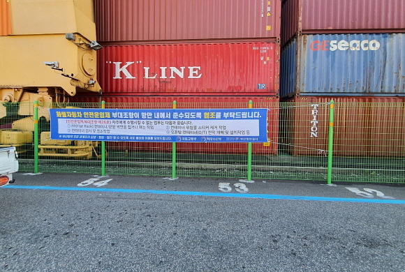 공사는 부산항 북항, 신항 일대의 컨테이너 터미널 운영사 총 11개사에 화물자동차 안전운임제 부대조항 준수 권고 현수막을 게시했다.
