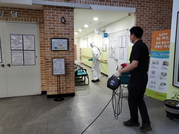 이날 공단 직원들은 전염병 감염에 취약한 노인들이 안심하고 복지관을 이용할 수 있도록 자체 장비를 활용해 강의실, 엘리베이터, 화장실 등 노인복지관 전역을 꼼꼼히 소독했다.