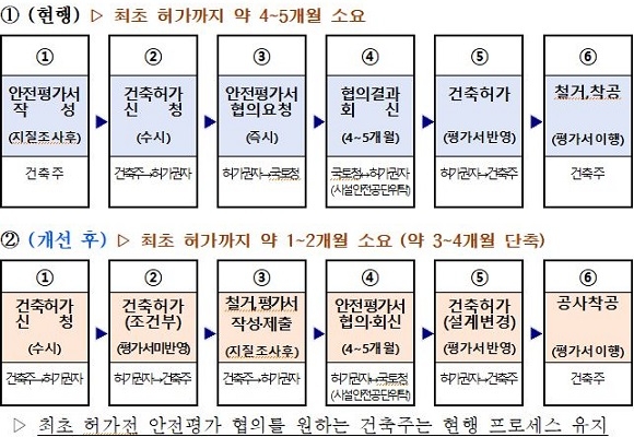 그러나 협의기관의 전문 인력 부족 등에 따라 협의 물량이 적체돼 있으며 사무위임·위탁 기관인 부산국토청, 시설안전공단 등을 거치는 절차로 인허가까지 통상 4~5개월이 걸렸다. 게다가 대부분의 건축 예정부지에는 기존 건축물이 존재해 정확한 지질조사가 힘들어 건축물 철거 후 지질조사를 다시 진행해 지하안전영향평가서를 보완해왔던 실정이다.