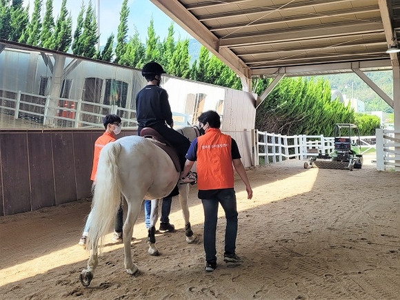 재활승마는 마사회 부경본부에서 2011년부터 매년 운영해오고 있는 대표 사회공헌 사업이다. 재활승마는 신체적·정신적 장애를 가진 사람들이 승마를 통해 몸과 마음의 회복을 도모하고, 즐거움을 느낄 수 있는 활동이다. 올해 1차 재활승마 강습은 지난 3월부터 운영됐다가 코로나19의 확산세로 인해 중단, 지난주 9일부터 재개돼 정상 운영 중이다.