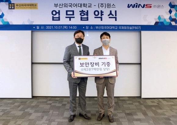 부산외대, 윈스와 MOU 체결… ‘스나이퍼’ 보안장비 기증식 개최
