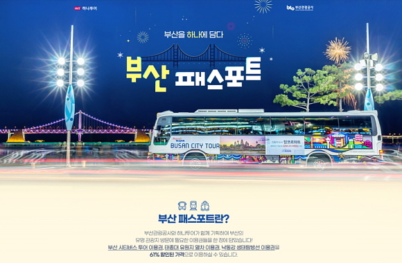 부산관광공사는 국내 최대 여행사인 ㈜하나투어와 함께 공사가 운영하는 부산지역 관광지 이용권을 한 장에 담은 ‘부산패스포트’ 상품을 출시해 한정 판매한다고 13일 발표했다.