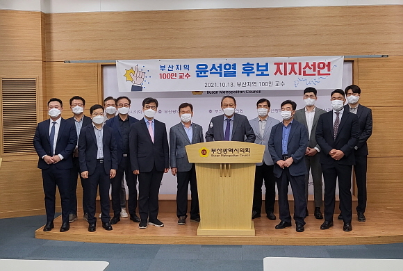 부산지역의 경제인, 지식인, 교수 일동이 13일 오후 2시경 부산시의회 브리핑실에서 기자회견을 열고 윤석열 국민의힘 대선 후보를 공식 지지하고 나섰다.
