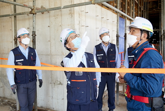 이날 남 본부장은 통합청사 현장에 재해 발생위험도가 큰 ‘철근 콘크리트’ 공사가 진행되는 만큼 기본 안전시설과 수칙 준수 여부 등을 확인했다. 또 현장간담회를 열어 안전관리의 필요성을 강조했다.