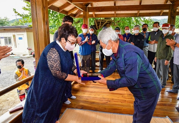 사회적 거리두기 3단계 상황에서 열린 준공식에는 회원만 참석한 가운데 정수문화쉼터 준공에 애쓴 박금자 진주시의회 부의장에게 감사패를 수여했다.