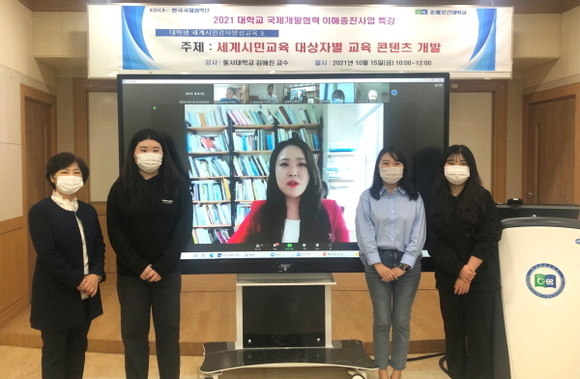 춘해보건대학교 국제개발협력센터는 15일 오전 10시 김애진 교수를 초빙해 ‘세계시민교육 대상별 교육 콘텐츠 개발’ 특강을 실시했다.