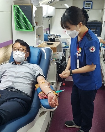 이날 도교육청 주차장에 마련된 경남혈액원 헌혈 버스에서 교육청과 인근 직속기관, 창원교육지원청 소속 직원들이 단체 헌혈에 참여했다.