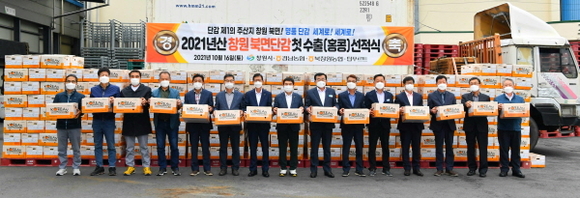 경남농협은 지난 16일 북창원농협 농산물산지유통센터에서 2021년산 단감 첫 선박 수출을 기념하는 선적식을 가졌다.