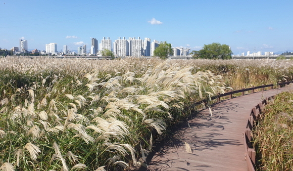 태화강 하구 물억새 군락지는 지난 2006년 조성됐고 면적은 21만5800여㎡에 달하며 도심 내 접근이 용이해 인기가 높다.