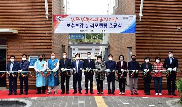 경남 진주시는 지난 16일 판문동 전통소싸움경기장 보수보강 및 리모델링 공사 준공에 따른 기념행사를 가졌다.