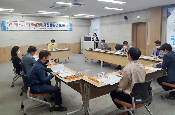 경남 함양군은 지난 15일 군청 소회의실에서 강승제 부군수 주재로 혁신전략담당관, 추진 분야별 담당 주사 등 10여명이 참석한 가운데 '인구 늘리기 5대 핵심 과제' 추진 토론 및 보고회를 가졌다.