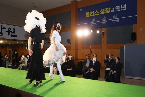 경남 창원시는 18일 시청 시민홀에서 '페트병 옷이 되다' 패션쇼를 개최했다.