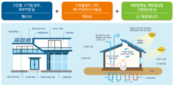 이를 위해 LH는 제로에너지 건축물 인증 등급별 건설 기준을 마련하는 등 기술 가이드라인을 정립하고, 제로에너지 주택 건설을 확대하기 위한 기술 로드맵도 수립했다. 특히, 기술 가이드라인은 단열 및 기밀성능을 강화하고 설비 효율을 높여 에너지 소비량을 최소화하며, 신재생에너지를 활용해 생산량을 최대화하는데 중점을 뒀다.
