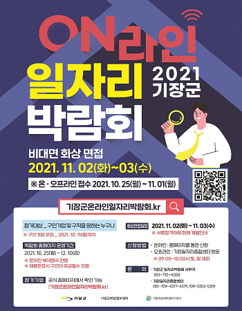 부산 기장군이 코로나19 감염병 확산방지와 언택트 전환 추세에 맞춰 비대면 방식으로 ‘2021 기장군 온라인 일자리 박람회’를 마련해 오는 25일 개막한다고 19일 밝혔다.