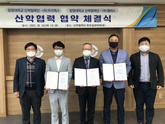 이번 협약은 창원대 졸업생이 창업한 기업인 ㈜우리웍스, ㈜엠테스와 산학협력단 간의 협약으로 현장실무 교육지원, 취업 연계 등 공동협력을 통한 상호발전을 목적으로 마련됐다.