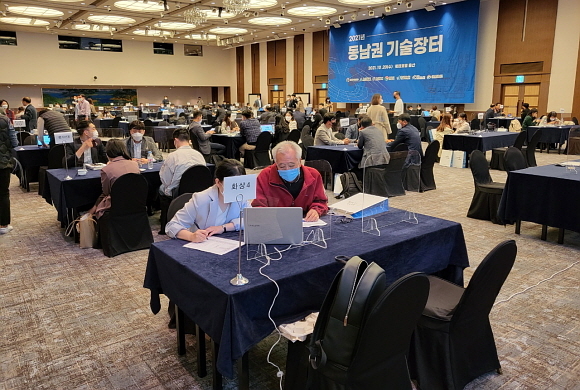 (재)부산테크노파크가 지난 20일 롯데호텔 울산에서 중견·중소기업 기술이전 활성화를 위해 개최한 ‘2021 동남권 기술장터’에서 1000여개의 기술 상담이 진행되는 등 성과가 났다고 21일 밝혔다.