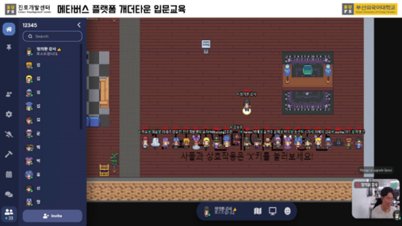 부산외국어대학교 진로개발센터는 지난 15일 진로 비교과 프로그램 메타버스 플랫폼 개더타운 입문교육을 성황리에 마쳤다고 21일 밝혔다.