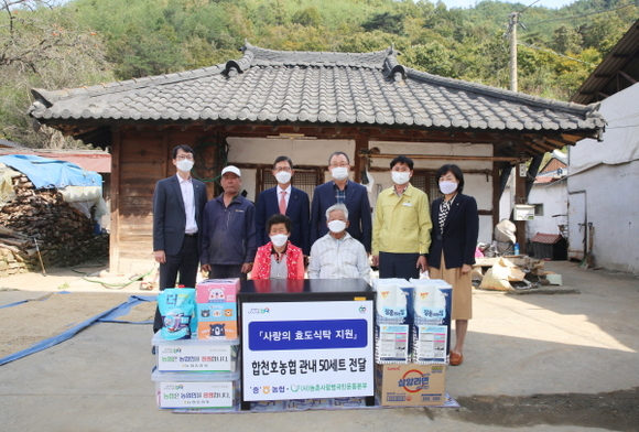 경남농협은 21일 합천군 용주면에서 합천호농협 관내 취약농가 및 독거노인 50가구를 대상으로 사랑의 효도식탁(2인용 식탁세트)을 지원했다.
