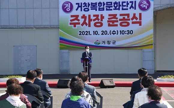 경남 거창군은 20일 구인모 군수, 김종두 군의장과 군·도의원, 문화원장, 전수관장, 예총지회장, 아림예술제위원장 등 40여 명이 참석한 가운데 '거창복합문화단지 주차장 준공식'을 가졌다.