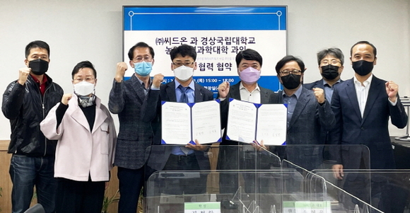 경상국립대학교(GNU) 농업생명과학대학과 ㈜씨드온은 지난 21일 오후 농업생명과학대학장실에서 상호협력 협정을 체결했다. 이번 협약은 경남 지역 농업 발전, 우수한 농산업 인력 확보 및 역량 강화, 해외 육성사업의 성공적인 수행 등을 위해 마련됐다.